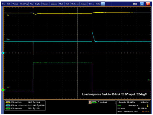 A)由于有限的控制回路速度,負載電流的快速變化會導致輸出電壓的變化。有時內部調節(jié)回路無法對電流的快速變化(由于時間延遲)作出反應,就會導致通常約為幾十毫伏(mV)的下沖/過沖。